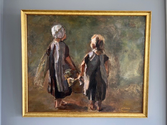 ‘Two little girls carrying a basket’